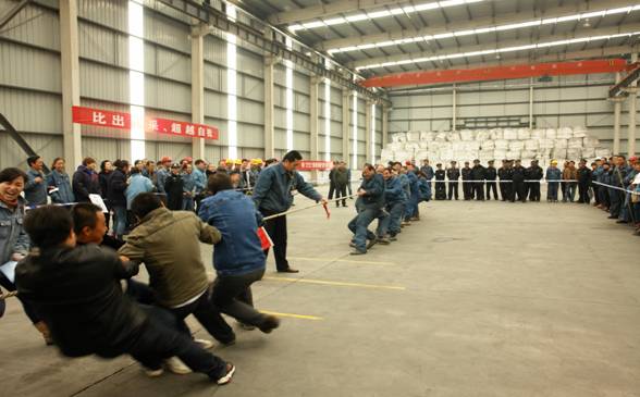 经过赛前的精心准备和热身训练,队员为集体争取荣誉,赛出了亮点。拔河比赛是考验一个团队凝聚力、合作精神以及组织纪律性的最好时机,赛场外不时爆发出阵阵热烈的加油助威声,场上队员鼓足了劲儿,连平时优雅秀丽的女士们此时也变成了大力士。最后,经过激烈的淘汰赛,长春炭素有限公司、电解一车间、电解二车间、铸造车间队进入了最后的决赛。在比赛中,不少队员的手磨破了皮,但却没有人在意,正是这顽强拼搏的精神铸就了我们物产北川工业园区蓬勃向上的生命力。
