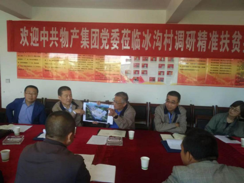 2017年,集团主要领导就捐建项目,多次亲临现场进行调研指导,推动项目落地落实见成效,并大力支持驻村工作队的工作。并要求围绕贫困村退出六项标准(贫困发生率低于3%;有村级集体经济或贫困村村级互助发展资金;农区有通行政村的沥青或水泥路;有安全饮用水;有生产生活用电;有标准化村卫生室、村级综合办公服务中心)精准工作。在集团公司200多万元项目资金的撬动下,按照"六个精准"指导方针,协调省、市、县相关行业部门,落实基础设施项目建设资金共计约1079万元,使得冰沟村脱贫攻坚工作得以顺利开展。即:协调国家电网农村电网改造投资项目300多万元;县新农办"美丽乡村"建设项目250万元;交通局村断头道路硬化3.2公里87万元;水务局河道治理、修建蓄水池2座150立方米约80万元;文体局文化广场硬化35万元;卫计局标准化卫生室25万元;县委组织部办公室设施2万元;2019年末又协调县农业农村局投资电商超市100万元,目前项目正在建设中,预计2020年底建成运营。建成项目农技培训中心(120