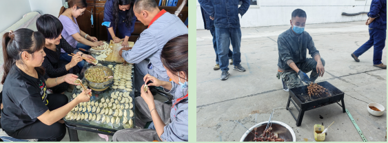 当“圆月皎皎在中天”时,各车间、各班组里处处洋溢着欢声笑语,大家积极秀厨艺,展示各自烹饪技能、享受美食,像一家人一样围坐一起,分享着“团圆”的味道!