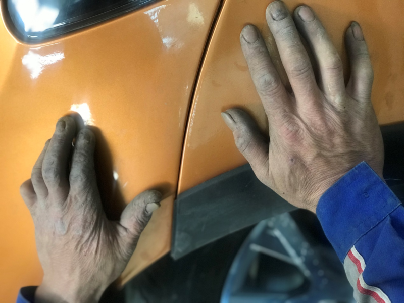 这是物产汽贸公司青年钣金技师在进行车辆维修作业时所拍,凝视镜头中凝聚了勤劳和汗水的双手。这双手是青年劳动者的荣耀,在无声中诠释着坚韧与执着。